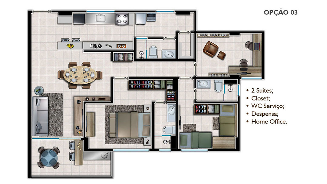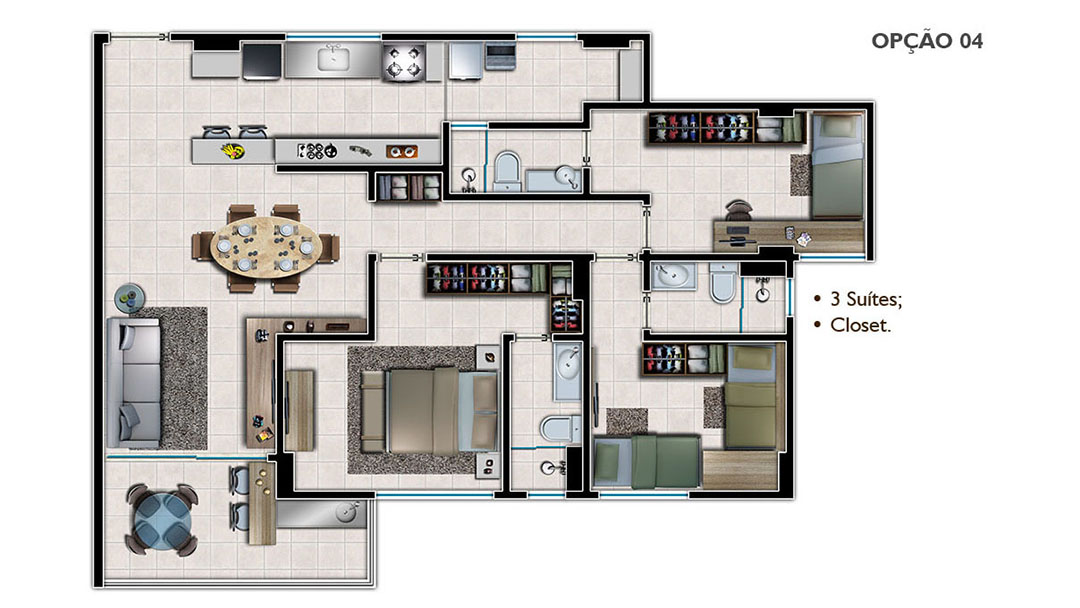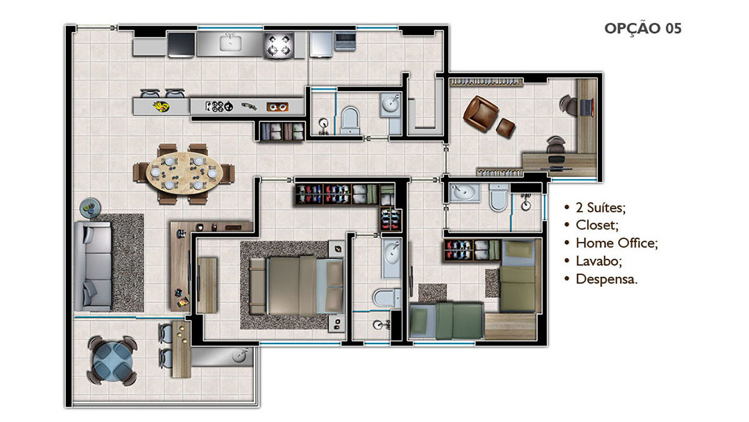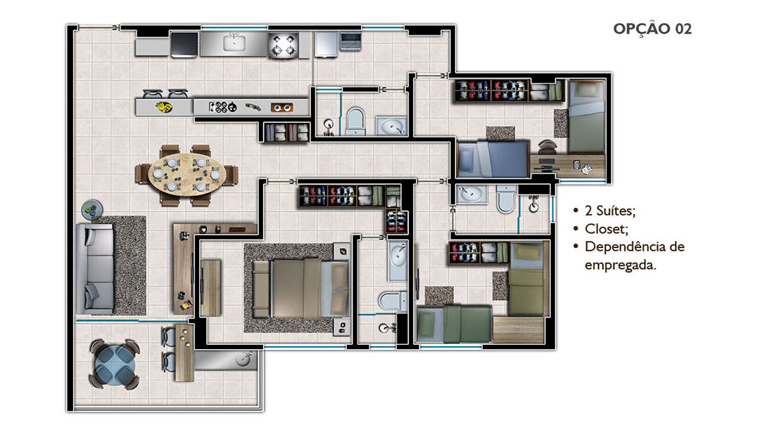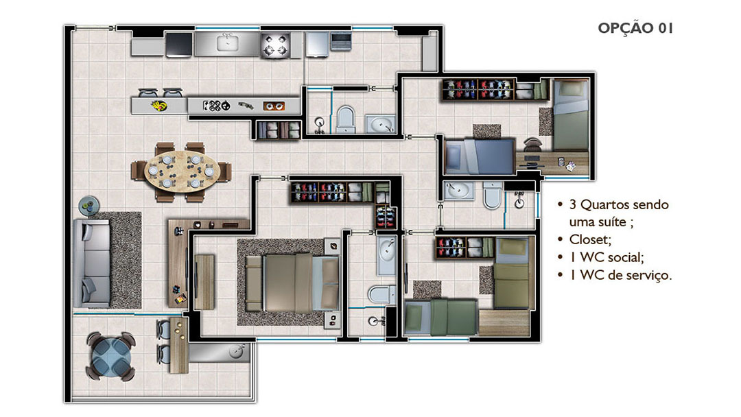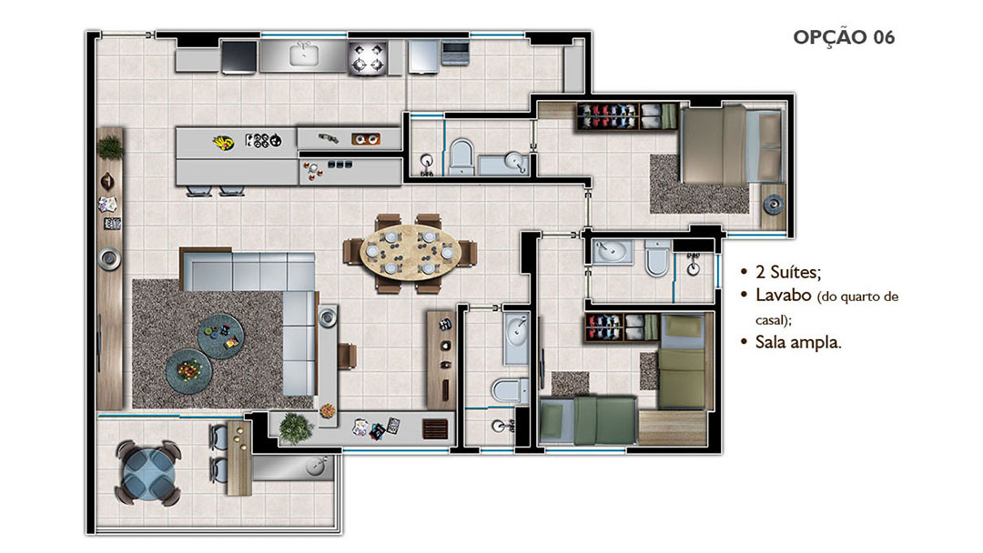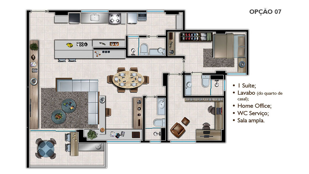 Acima de tudo reunimos um conceito arrojado, com layouts que são adaptáveis para família e para solteiros.